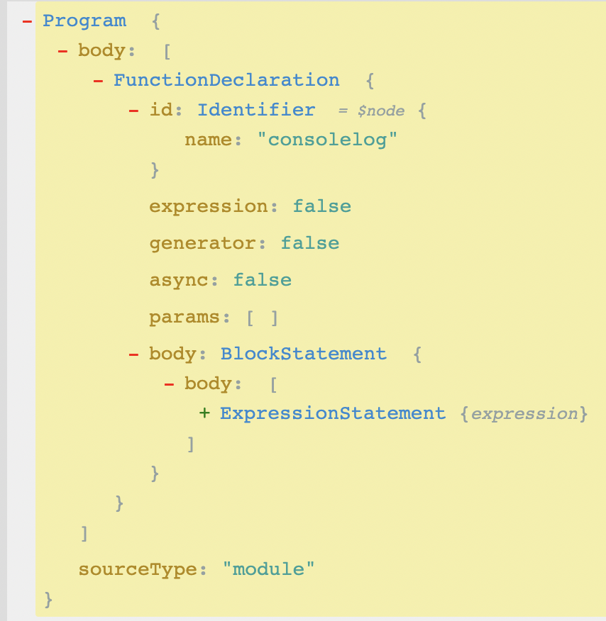 - AST 는 모든 요소에 대한 properties 와 annotation 과 같은 정보를 통해 수정되거나 향상될 수 있다.