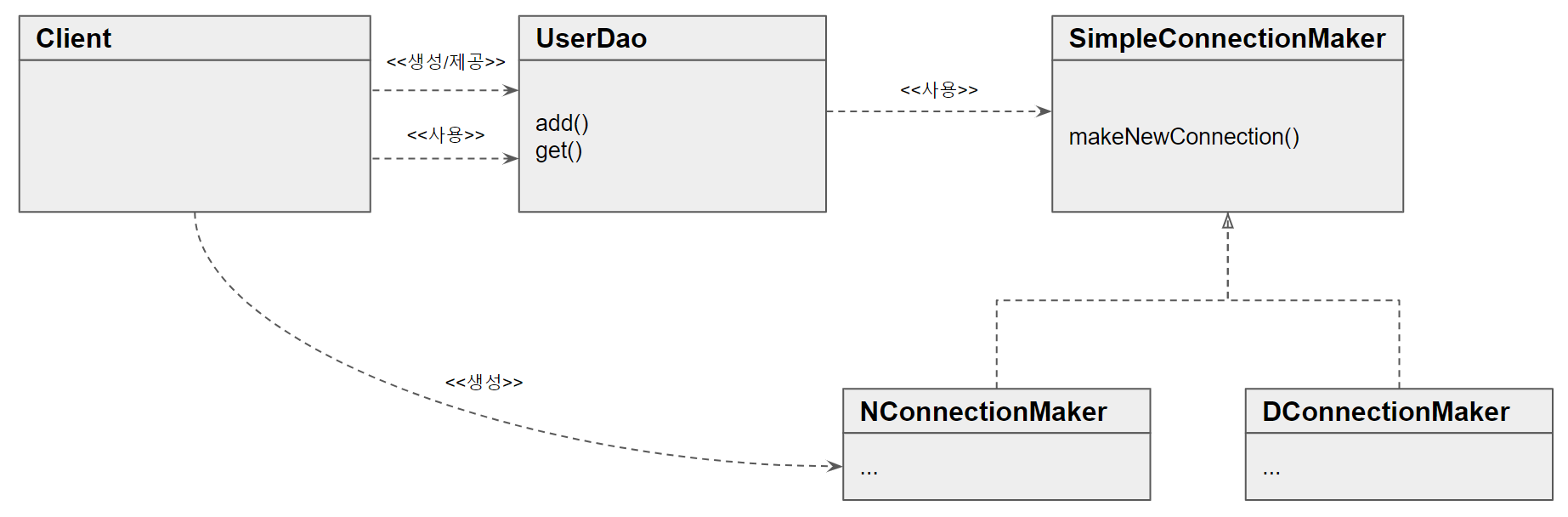 UserDao코드에서Connection을 반환하는 부분만 위임했던 코드와 흡사하다.- 정확히 어떤