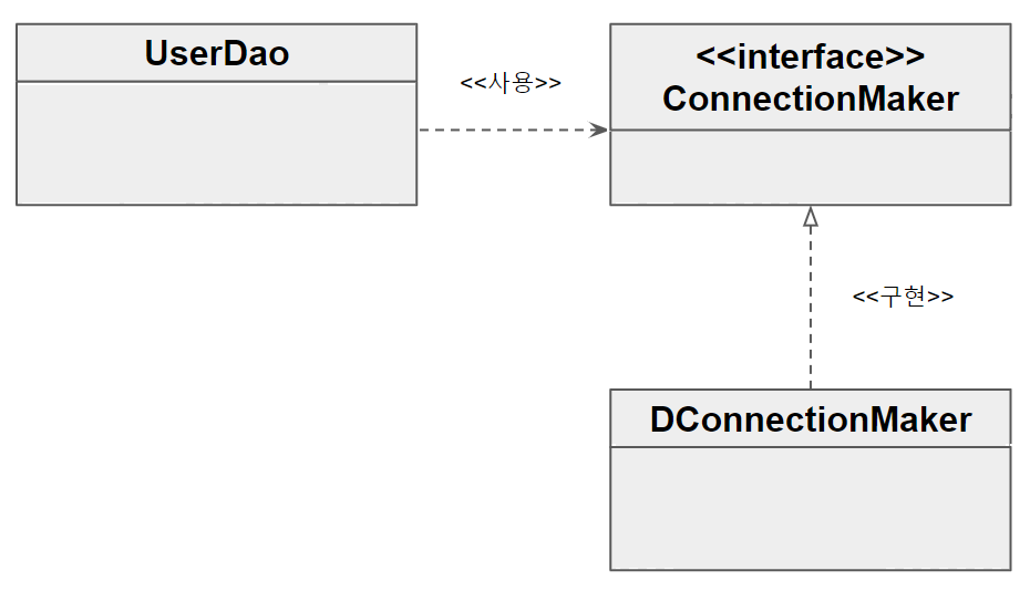 UserDao클래스는 의존관계를 주입받는다고 할 수 있다. - 의존관계 주입은