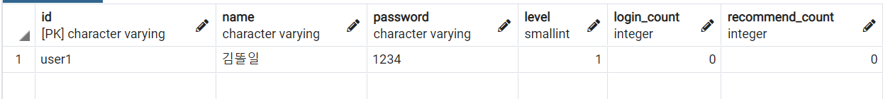 Postgres 기준으로 위와 같은 타입과 이름으로 만들었다.