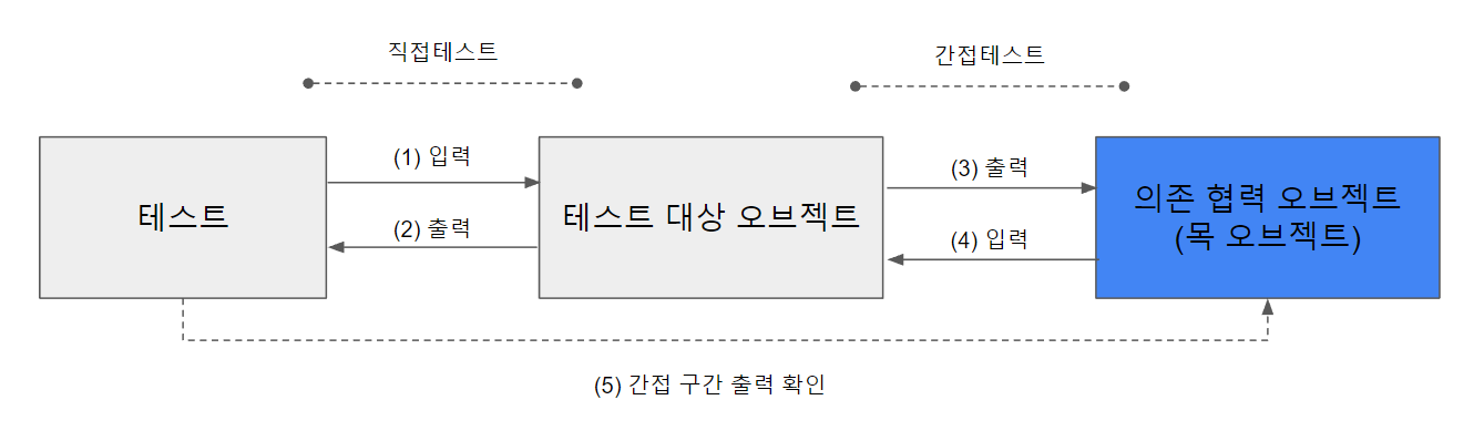 (5)를 빼면 테스트 스텁이다.- 테스트 오브젝트는 테스트 중에도 여러 다른 오브젝트와 커뮤니케이션하므로 그 과정에서 일어나는 입출력도 검증이 필요한 경우가 있다.