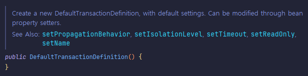 - 트랜잭션의 시작과 종료를 지정하는 일을 트랜잭션 경계설정이라고 하며, 비즈니스 로직 안에서 일어나는 경우가 많다.