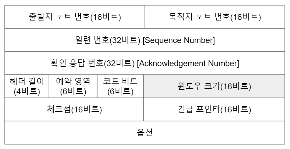 윈도우 크기는 세그먼트를 일시적으로 저장하는 버퍼의 한계 크기를 말한다. 즉, 얼마나 많은 용량의 데이터를 저장해둘 수 있는지를 나타내는 크기이다.