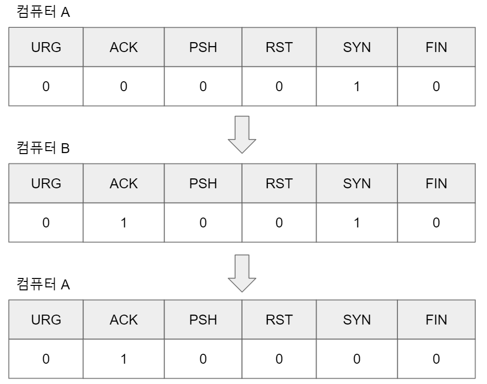 SYN: 연결 요청ACK: 확인 응답FIN: 종료 요청